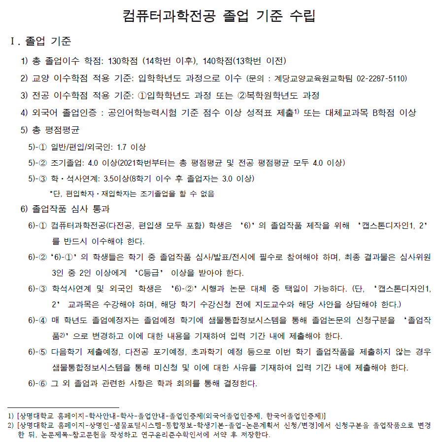 컴퓨터과학전공 졸업기준